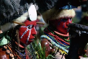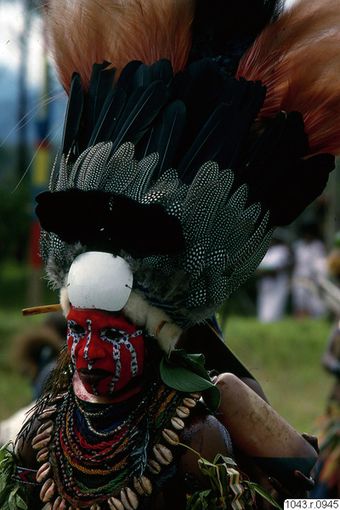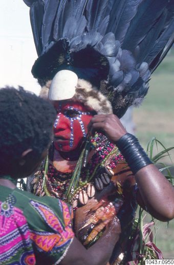 ["halsband, ansiktsmålning, huvudbonad, fotografi, photograph"]Museum of EthnographyType Unknown Papua New Guinea -