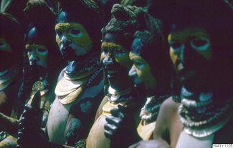 ["dans, uppträdande, ansiktsmålning, huvudbonad, fotografi, photograph"]Museum of EthnographyType Unknown Papua New Guinea -