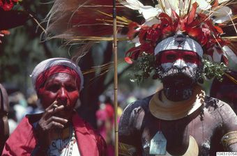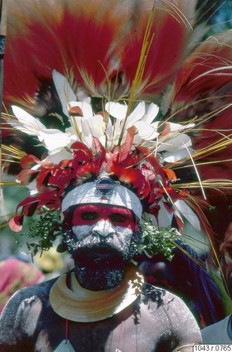 ["ansiktsmålning, huvudbonad, porträtt, kvinna, man, fotografi, photograph"]Museum of EthnographyType Unknown Papua New Guinea -
