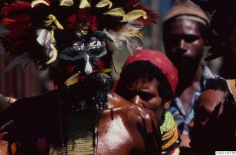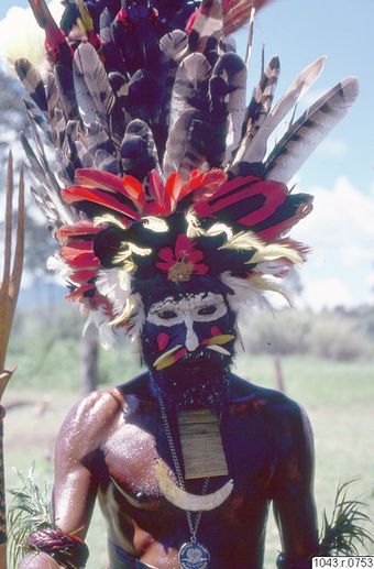 ["porträtt, huvudbonad, ansiktsmålning, fotografi, photograph"]Museum of EthnographyType Unknown Papua New Guinea -