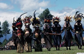 ["gruppbild, dans, män, uppträdande, fotografi, photograph"]Museum of EthnographyType Unknown Papua New Guinea -