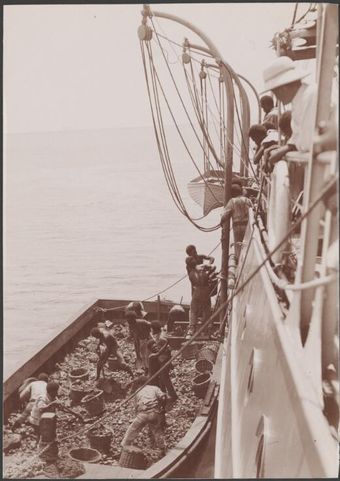 Men coaling the Southern Cross, Vila, New Hebrides, 1906 / J.W. BeattieNational Library of AustraliaImage Vanuatu