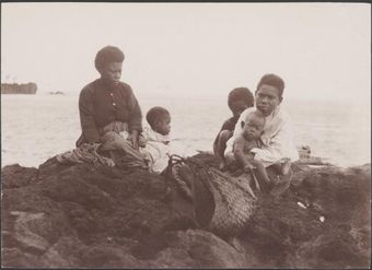 Two women with three children on the landing rock at Merelava, Banks Islands, 1906 / J.W. BeattieNational Library of AustraliaImage Vanuatu Online