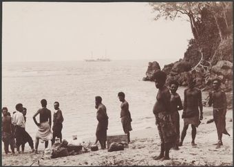 Local men on the beach at Dorig with Southern Cross in background, Santa Maria, Banks Islands, 1906 / J.W. BeattieNational Library of AustraliaImage Vanuatu Online