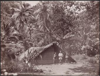 A man and two boys at a house at Lamalana, Raga, New Hebrides, 1906 / J.W. BeattieNational Library of AustraliaImage Vanuatu