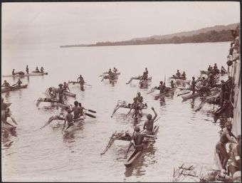 Solomon Islanders in canoes alongside the Southern Cross for trade at Graciosa Bay, Santa Cruz Islands, 1906, 2 / J.W. BeattieNational Library of AustraliaImage Online