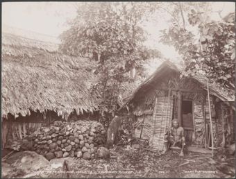 Local people gathered near the womens quarters of Ferasiboa, Malaita, Solomon Islands, 1906 / J.W. BeattieNational Library of AustraliaImage Online