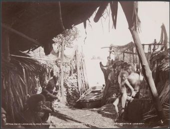 Men and boys at the mens landing place of Ferasiboa, Malaita, Solomon Islands, 1906 / J.W. BeattieNational Library of AustraliaImage Online