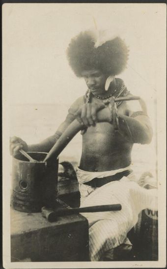 [Native boy, working on a large piston from an engine, the connecting rod is being held and he is tightening/loosening the gudgeon pin with a shifting spanner, Port Moresby, about 1925] GibsonNational Library of AustraliaImage Papua New Guinea Online