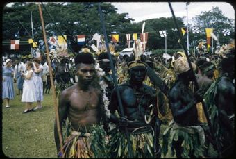 Sing-sing on Boxing Day at the Old Football Oval, Lae, between 1955 and 1960, [12] Tom MeiganNational Library of AustraliaImage Papua New Guinea 1955 to 1960 Online