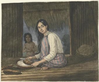 A woman of the Mariannas or Ladrone Islands, scraping yams to make paste for bread, drawn from nature [Augustus Earle]National Library of AustraliaImage Mariana Islands Online