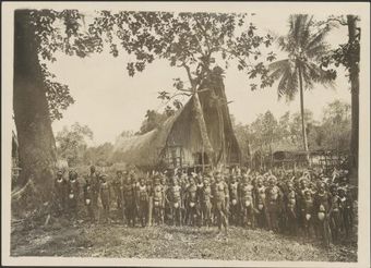 Large gathering of men before the Dubu Daima of Tovei village, Gulf Province, Papua New Guinea, ca. 1922 / Frank HurleyNational Library of AustraliaImage Papua New Guinea 1920 to 1929