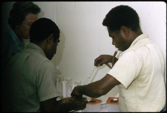 Testing adult anopheline mosquitoes for susceptibility to DDT (2) : Bougainville Island, Papua New Guinea, April 1971 / Terence and Margaret SpencerNational Library of AustraliaImage Papua New Guinea 1953 to 1978