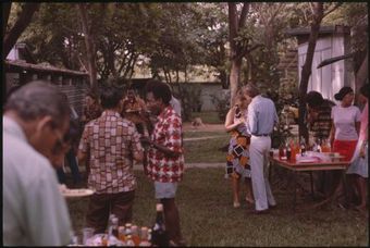 The party (Dr Nathaniel Tavil, director of the Dept of Public Health, in the centre). : Papua New Guinea, 1976-1978 / Terence and Margaret SpencerNational Library of AustraliaImage Papua New Guinea 1953 to 1978