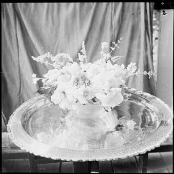 Bowl of mixed flowers on a round tray, Rabaul [?], New Guinea, ca. 1936 / Sarah ChinneryNational Library of AustraliaImage Papua New Guinea 1934 to 1937 Online