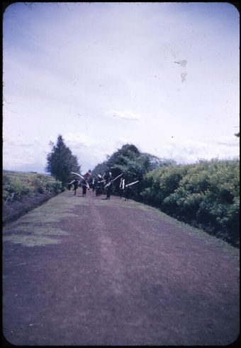 The passing parade on the road past our house, the men are approaching with long sticks : Minj Station, Wahgi Valley, Papua New Guinea, 1954 / Terence and Margaret SpencerNational Library of AustraliaImage Papua New Guinea 1953 to 1978