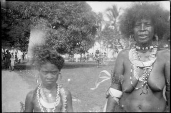 View of a decorated woman and a child, Papua, ca. 1923 / Sarah ChinneryNational Library of AustraliaImage Papua New Guinea 1921 to 1924 Online