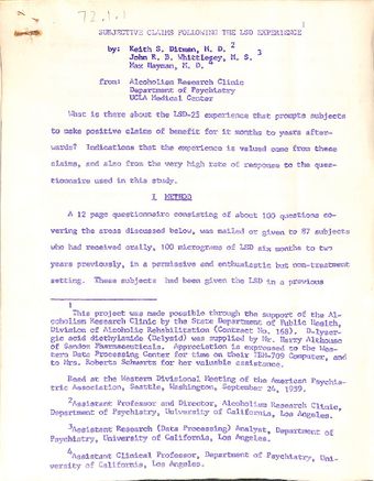 Subjective claims following the LSD experience etcTe Puna Vai Marama Cook Islands Centre for ResearchText Cook Islands Online -