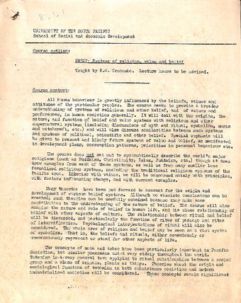 SE322 Systems of religion, value and belief, course outlineTe Puna Vai Marama Cook Islands Centre for ResearchText Cook Islands Online -