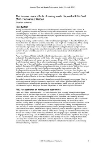 The environmental effects of mining waste disposal at Lihir Gold mine, Papua New GuineaSecretariat of the Pacific Regional Environment Programme (SPREP)Text -