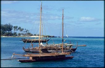 Three boats with long mastsMuseum of New Zealand Te Papa TongarewaImage Cook Islands