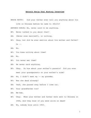 Oral History Interview with Antonio BorjaNational Museum of the Pacific War/Admiral Nimitz FoundationText Northern Marianas