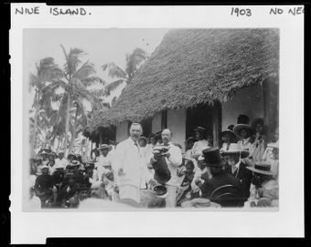 Creator unknown: Hon C H Mills presenting New Zealand Ensign, NiueAlexander Turnbull LibraryImage Niue