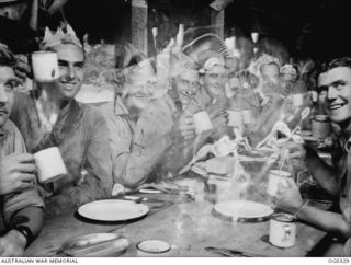 PORT MORESBY, PAPUA. 1942-12-25. WITH CHRISTMAS PARTY CAPS ON THAT WERE SENT BY MAIL FROM TASMANIA TO LEADING AIRCRAFTMAN (LAC) A. D. LOANE OF DEVONPORT AND ARRIVED ON CHRISTMAS EVE, THESE AIRMEN ..Australian War MemorialImage Papua New Guinea Online
