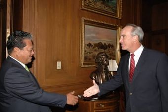 [Assignment: 48-DPA-09-26-07_SOI_K_Pres_Note] Secretary Dirk Kempthorne [and aides meeting at Main Interior] with delegation from Republic of Marshall Islands, led by Marshalls President Kessai Note [48-DPA-09-26-07_SOI_K_Pres_Note_DOI_2150.JPG]National Archives at College Park - Still PicturesImage