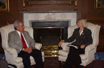 Secretary Gale Norton meeting with the Governor of American Samoa, Togiola Tulafono, left, at Department of Interior headquartersNational Archives at College Park - Still PicturesImage