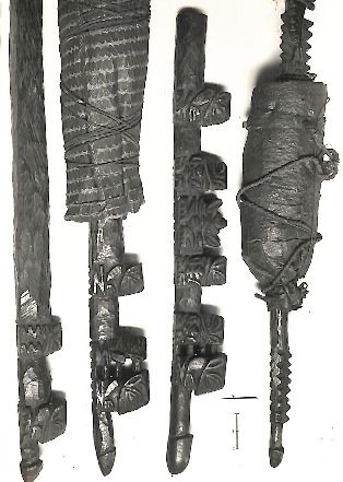 Photo of two wooden objects - one a 'tokere' (XX11/36)Te Puna Vai Marama Cook Islands Centre for ResearchImage Cook Islands Online -