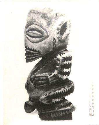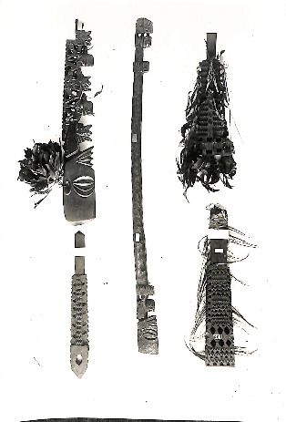 Photo of a sinnet piece with a slim Tangaroa wooden carving within(XIX45)Te Puna Vai Marama Cook Islands Centre for ResearchImage Cook Islands Online -