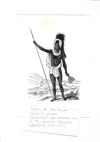 Photo of a man with handwritten note 'Tepou, A Rarotongan chief; a former cannibal who became one of the earliest converts (Gill 1894: 347)'Te Puna Vai Marama Cook Islands Centre for ResearchImage Cook Islands Online -