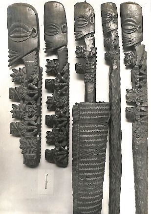 Photo of five wooden carvings (XIX/46)Te Puna Vai Marama Cook Islands Centre for ResearchImage Cook Islands Online -