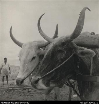 Cattle used to plough and cultivate cropsAustralian National University LibraryImage Fiji 1950 to 2023 -