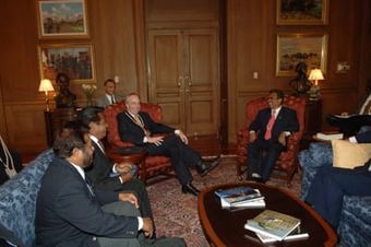 [Assignment: 48-DPA-02-25-08_SOI_K_Pres_Palau] Secretary Dirk Kempthorne [meeting at Main Interior] with government delegation from the Republic of Palau, [led by Palau President Tommy Remengesau. Secretary Kempthorne and President Remengesau discussed, among other subjects, the possibility of creating a National Heritage Area on the Palau island of Peleliu, along with the upcoming Review of the Palau-U.S. Compact of Free Association.] [48-DPA-02-25-08_SOI_K_Pres_Palau_IOD_1096.JPG]National Archives at College Park - Still PicturesImage