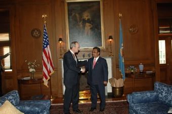 [Assignment: 48-DPA-02-25-08_SOI_K_Pres_Palau] Secretary Dirk Kempthorne [meeting at Main Interior] with government delegation from the Republic of Palau, [led by Palau President Tommy Remengesau. Secretary Kempthorne and President Remengesau discussed, among other subjects, the possibility of creating a National Heritage Area on the Palau island of Peleliu, along with the upcoming Review of the Palau-U.S. Compact of Free Association.] [48-DPA-02-25-08_SOI_K_Pres_Palau_IOD_1138.JPG]National Archives at College Park - Still PicturesImage