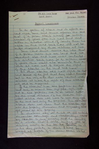 Allocation of land in unofficial ways (Custom ways), by Mason Nesa, 1984Te Puna Vai Marama Cook Islands Centre for ResearchText Cook Islands Online -