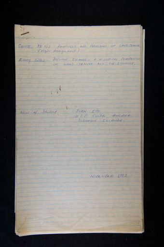 Solomon Islands: A historical perspective of land tenure and the economy by John Ipo, Nov 1983Te Puna Vai Marama Cook Islands Centre for ResearchText Cook Islands Online -
